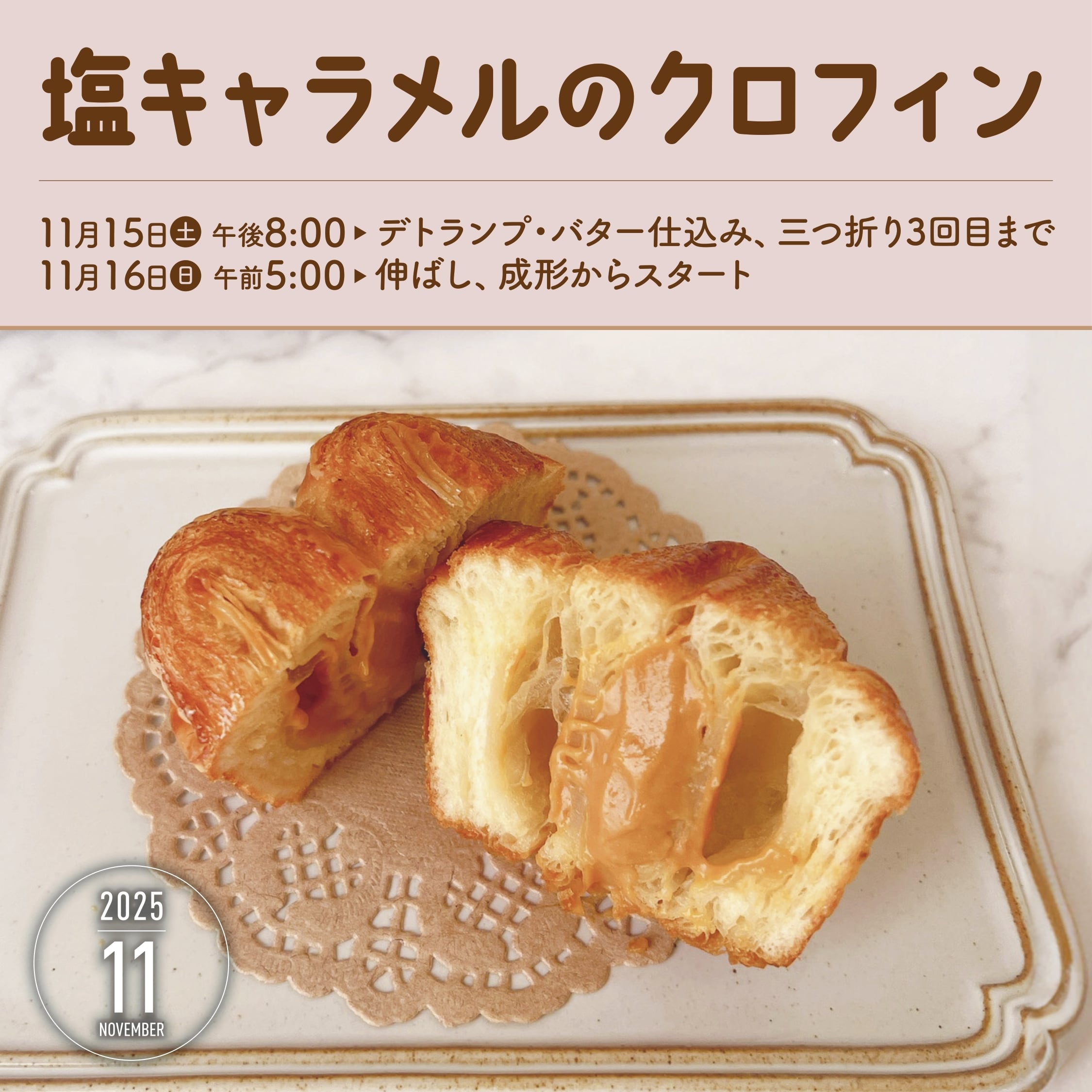 華やかなウェイブ模様のクロフィンにコクのあるキャラメルクリームを詰めました。ちょっとしたプレゼントにもぴったりです。減塩したい方はキャラメルクリームの塩を省いてもOKです。